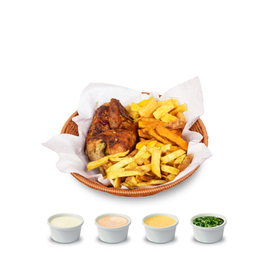 1/2 POLLO A LA BRASA + PAPAS + CREMAS